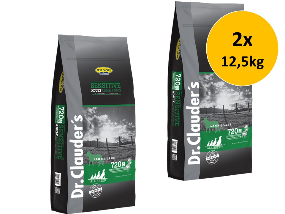 Dr.Clauder’s Best Choice Adult Lamm & Reis | 2×12,5 kg Sparpack – Hochwertige, sensible Ernährung für erwachsene Hunde