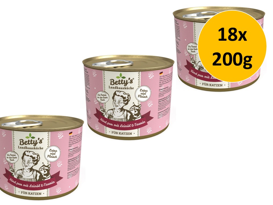 Bettys Landhausküche Katze Rind Pur mit Leinöl | 18x 200g Sparpack