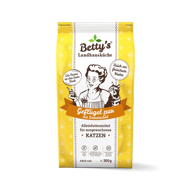 Bettys Landhausküche Adult Trocken Geflügel pur – 300 g Katzentrockenfutter