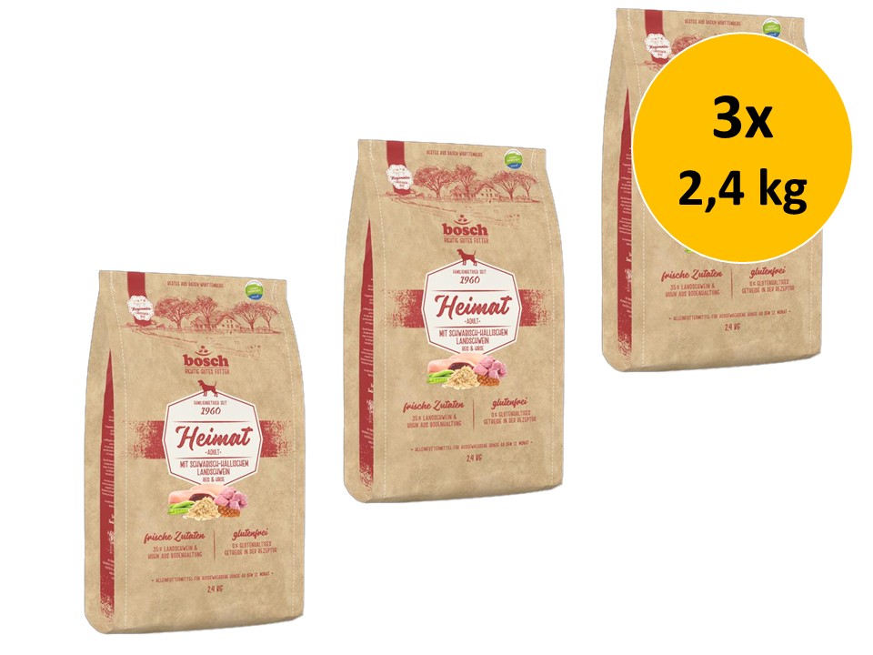 Bosch Heimat Adult Schwäbisch-Hällisches Landschwein | 3x 2,4 kg Sparpack – Hundefutter