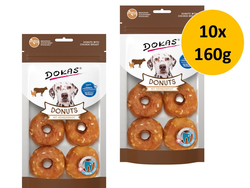 Dokas Dog Donuts mit Hühnerbrust 10 × 160 g – Leckere Kaudonuts für Hunde im Sparpack