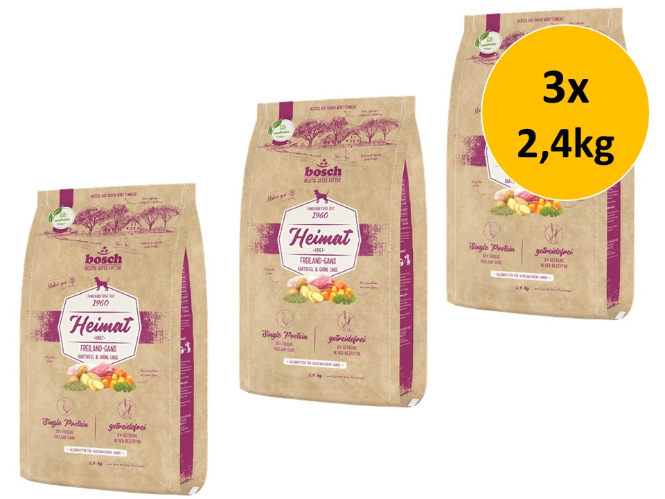 Bosch Heimat Adult Freiland-Gans | 3x 2,4kg Hundefutter Sparpack