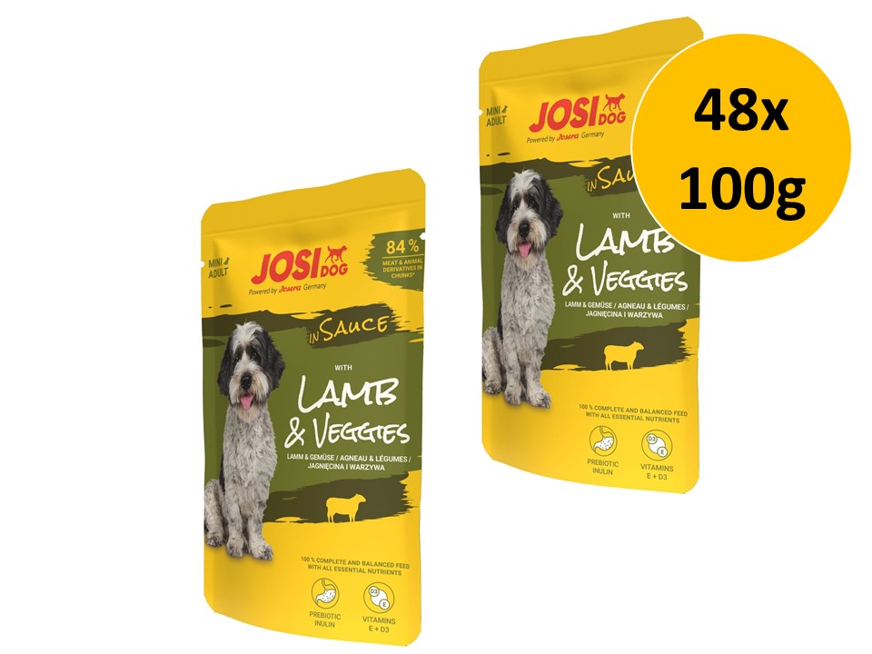JosiDog Lamb & Veggies in Sauce | 48x 100g Hundefutter Sparpack