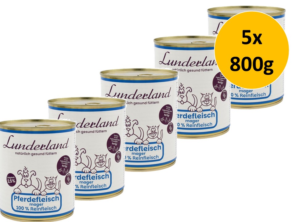 Lunderland Reinfleisch Pferdefleisch mager – 5 × 800 g Sparpack