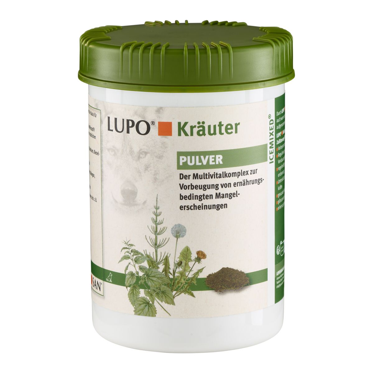 Mit dem Luposan Kräuter Pulver 1kg unterstützt du die Gesundheit und Vitalität deines Hundes auf natürliche Weise – reich an Kräutern, vielseitig wirksam und ideal für die tägliche Fütterung.
