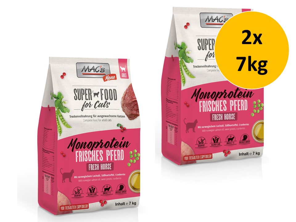 MACs Cat Adult Mono Pferd | 2x 7kg Katzenfutter Sparpack