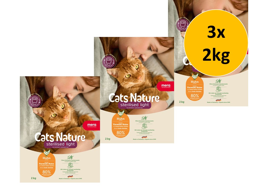 Mera Cat Nature Sterilized / Light Huhn – 3x 2kg Katzenfutter Sparpack