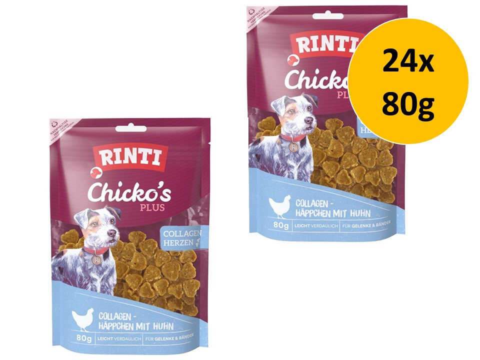 Rinti Chicko Plus Collagen Hearts – 24 × 80 g Hundesnack Sparpack