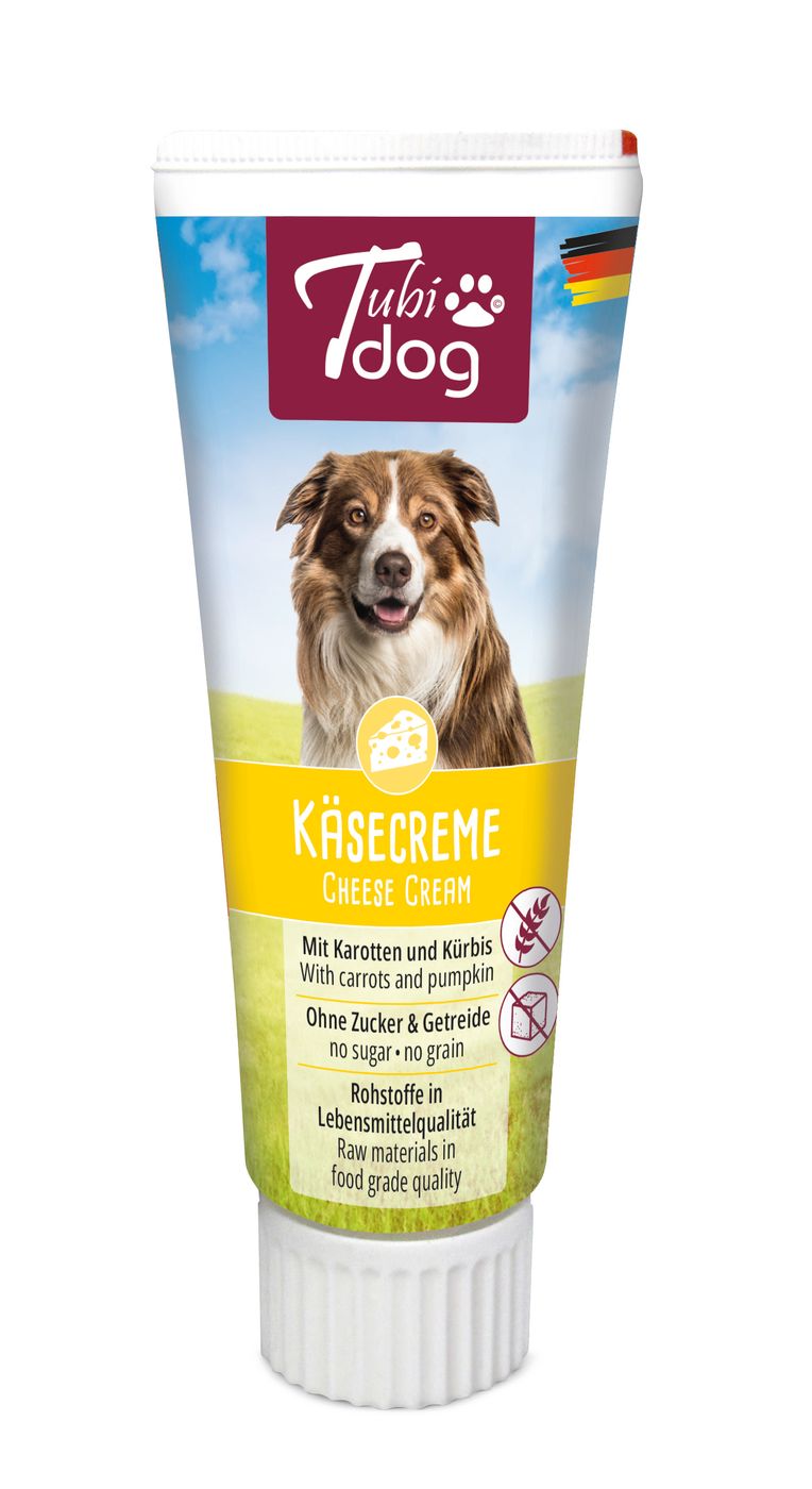 Tubi Dog Käsecreme ist der cremige Lieblingssnack für Hunde – ob als Belohnung, zum Training oder einfach zwischendurch.