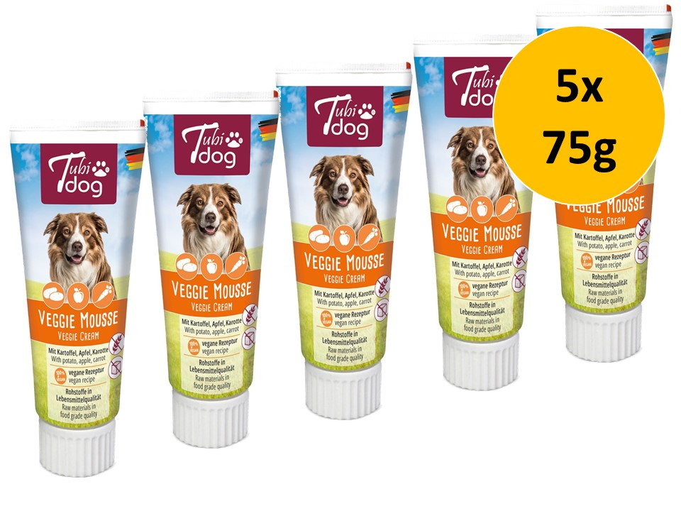 Tubi Dog Veggie Mousse | 5x 75g Hundesnack Sparpack