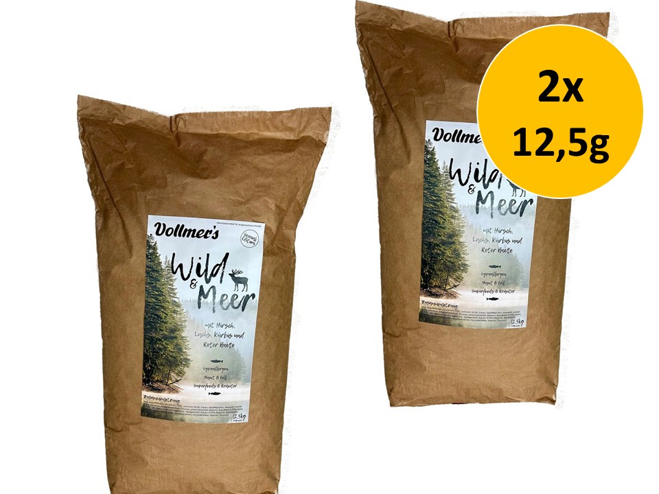Vollmers Wild & Meer | 2x 12,5 kg Sparpack – Trockenfutter für Hunde